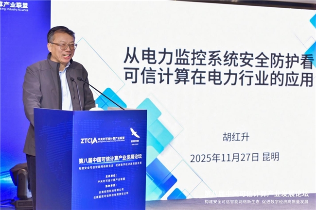 2025年11月27日,由中关村可信计算产业联盟主办,云南安防科技有限公司、云南星数可信科技有限责任公司协办的“第八届中国可信计算产业发展论坛”在云南滇中新区圆满举行。本次会议得到了宁波和利时信息安全研究院有限公司、浪潮通信信息系统有限公司、上海图灵智算量子科技有限公司、海光信息技术股份有限公司等单位的鼎力支持,会议主题为“构建安全可信智能网络新生态,促进数字经济高质量发展 ”。 滇中新区战略新兴产业集群崛起,数字经济发展迅速,本次论坛众多网络安全与可信计算企业云集滇中新区,希望能够加强与本地企业交流合作,促进自主可信计算应用结出新的果实。来自主管部门以及可信计算产学研各界的重量级嘉宾纵论网络安全可信发展,来自政府相关机构、业界领军企业、知名高校和研究机构的领导、专家百余人出席本次大会。中关村可信计算产业联盟秘书长刘达主持会议,数近千人在网上收听收看视频直播。 云南滇中新区管委会临空先进制造业局局长苏志云、中关村可信计算产业联盟副理事长张建标等领导出席大会并致辞,中国工程院沈昌祥院士莅临大会做主旨演讲,原国家能源局信息中心副主任胡红升,公安部第三研究所检测认证中心副主任沈亮出席大会做主旨演讲。 中国工程院院士沈昌祥做主旨演讲 云南滇中新区管委会临空先进制造业局局长苏志云致辞 中关村可信计算产业联盟副理事长张建标致辞 原国家能源局信息中心副主任胡红升做主旨演讲 公安部第三研究所检测认证中心副主任沈亮做主旨演讲 中关村可信计算产业联盟秘书长刘达主持 没有网络安全就没有国家安全,党的二十大提出了加快建设网络强国、数字中国的战略任务。我国自主创新的主动免疫可信计算,在计算的同时进行并行的安全防护,经过三十多年滚动发展取得许多重要应用成果。我们必须按照国家网络安全法律、战略、制度要求,用主动免疫可信计算筑牢网络空间安全防线。 本届大会的亮点之一,为2025年可信计算宣传推广项目颁发证书,包括面向我国可信计算产品和服务的应用示范项目,面向可信联盟会员单位的可信计算创新团队名录,本次活动突出展示了可信联盟的核心会员单位在安全可信领域已实际落地应用的案例成果。 2025年可信计算宣传推广项目颁奖 本届大会的亮点之二,为新一届物联网专业委员会主任、副主任单位颁发证书。近年来,物联网在智慧城市、智能农业、智能安防等领域发展迅速,特别是车联网、低空飞行器、智能机器人等新兴领域的发展令人刮目相看。但是,物联网的迅速发展也带来安全风险激增,物联网发展机遇和挑战并存,极大拓展了自主可信计算发展空间。 新一届物联网专业委员会主任、副主任单位颁发证书 可信联盟党支部书记、秘书长刘达主持大会时表示,中共中央办公厅、国务院办公厅2024年印发《关于完善市场准入制度的意见》,自主可信计算跻身新质生产力发展的十大新业态新领域。在刚刚闭幕的中共二十届四中全会上通过的“十五五规划建议”,将“建设网络强国”列为国家现代化建设的核心战略目标之一,将“网络安全”和“数据安全”纳入国家总体安全体系,可信联盟今后打造智能化主动免疫可信计算产业新生态任重道远。 会员单位代表结合自身取得的成果在大会发言,宁波和利时信息安全研究院有限公司演讲主题为“打造安全可信工业AI 驱动行业智能化升级”;上海图灵智算量子科技有限公司演讲主题为“量子密码开启安全新纪元”;海光信息技术股份有限公司演讲主题为“内生可信,海光筑基,海光CPU赋能可信生态构建与应用”。 今后,可信联盟将一如既往地推动可信计算产业发展,按照“一个通用四个拓展”的布局优化资源配置,践行宗旨、健全组织、服务会员,团结广大会员单位共同为建设网络强国贡献力量。
